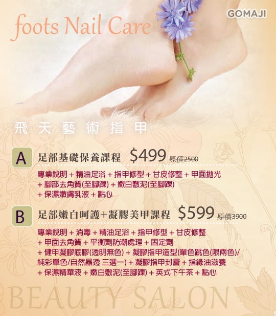 B.足部嫩白呵護+凝膠美甲課程