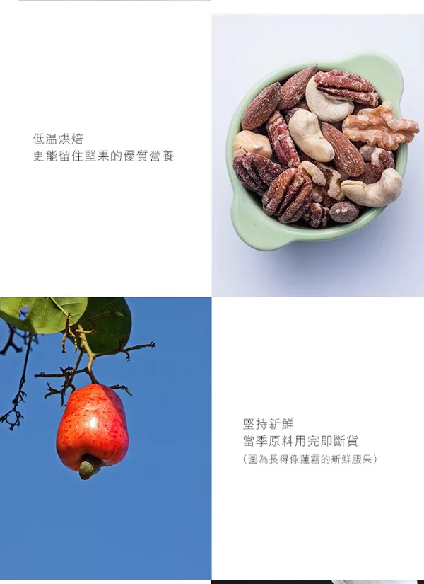 低溫烘焙,保留原味:依不同堅果的特性,使用特殊技術低溫烘焙,不僅口感加分,更能留住堅果的優質營養。