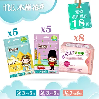HIBIS木槿花幸福柔棉+3D瞬潔草本衛生棉夜用18件組 ![]() |
