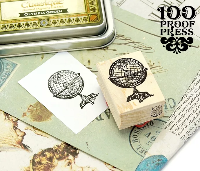 【100 Proof Press】美國復古素描印章_地球儀 評價