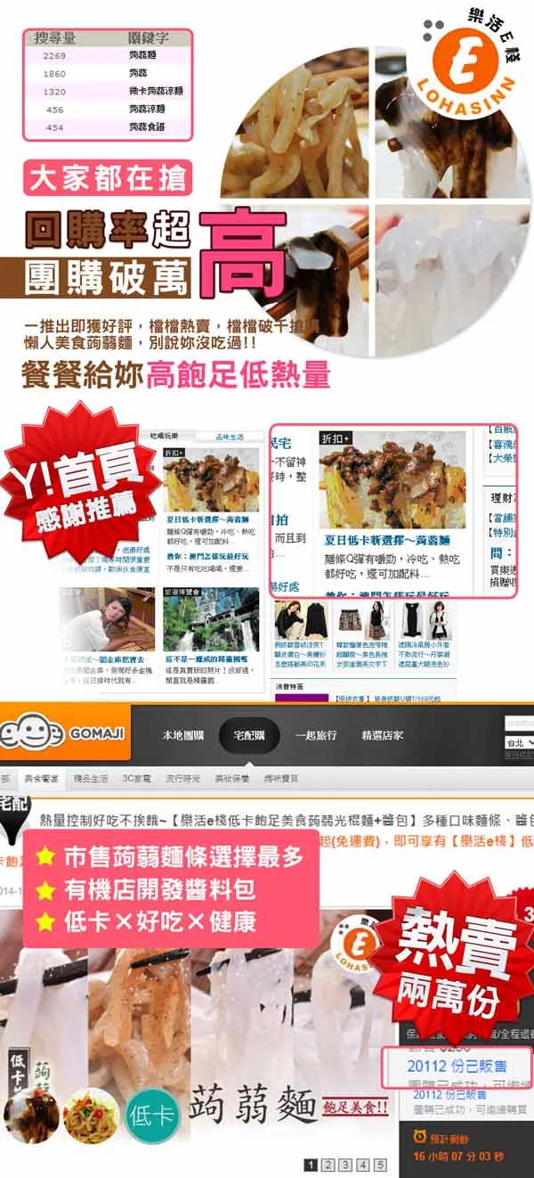 超過20個知名網購及團購通路販售的蒟蒻麵領導品牌